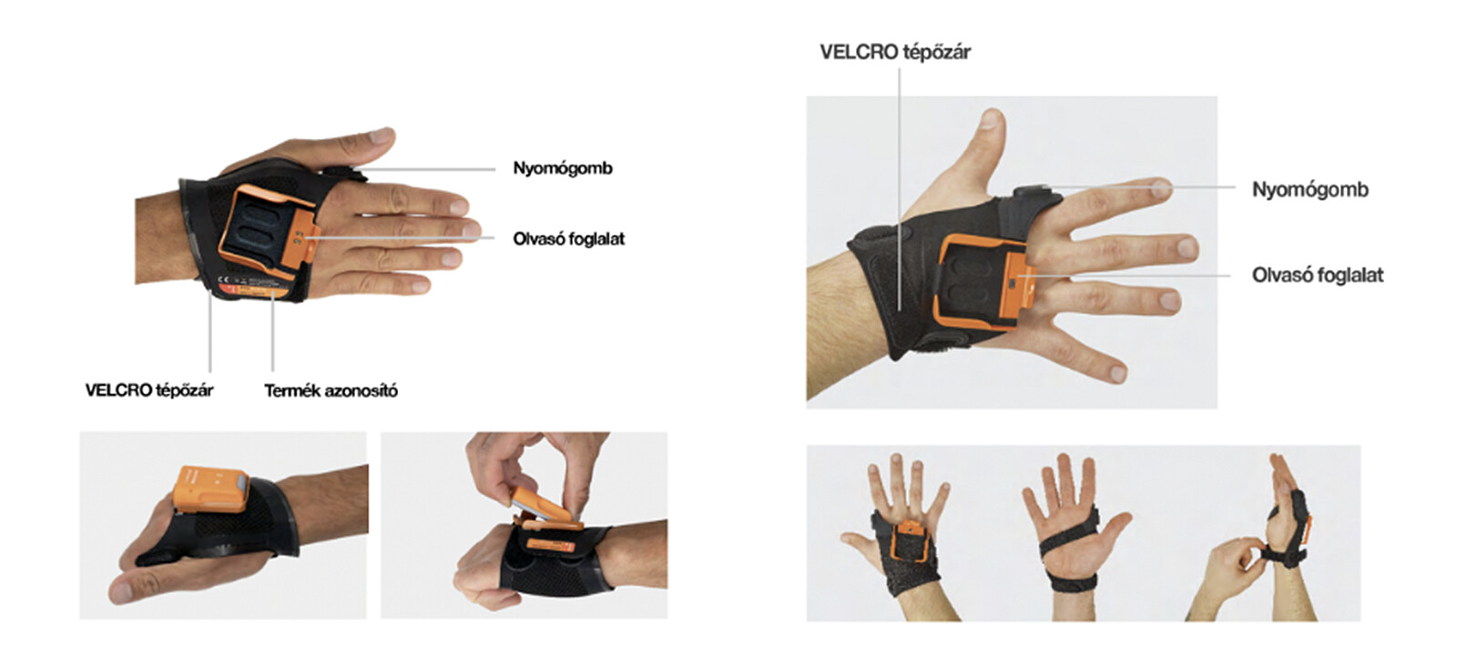 Az eszközök speciális félkesztyűkbe integrálhatóak és ergonomikus kialakításuknak köszönhetően teljes szabadságot biztosítanak a kézi árumozgatás során. A hüvelyk- és mutatóujj között lévő nyomógombbal a vonalkódolvasás egyetlen, kényelmes mozdulat.